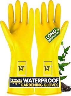 14 Inch Long & Thick Rubber Heavy Duty Gardening Gloves - Waterproof Hand Gloves for Garden Work - Handling Accessories Tools & Equipments for Home Garden,Dairy Farming, Beekeeping & Kitchen quantity