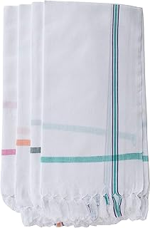 YATTA Traditional Thorthu Kerala Towel Cotton X-Large Size | Pack of 4 | Size – 57 inch | End Stitched Thorth | Kerala Thorthu White Cotton Towels for Bath | Light Weight, Quick Dry | 130gsm
