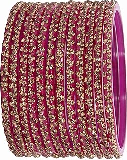 Glass with Zircon Gemstone Studded worked and Flower Pattern Glossy Finished Kada Set For Women and Girls
