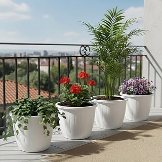Go Hooked Flower Pot for Gardening | Indoor/Outdoor Planter | White | 10 INCH | Pack of 4 | Plastic | Planters