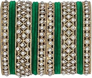 Gold Plated Traditional Royal Emerald Velvet Chuda Bangle Set Kada for Bridal/Women