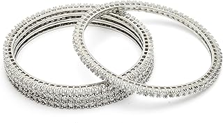 Jewelry Rhodium Plated Brass Silver Toned Set Of 4 American Diamond Gold Plated Bangles For Women and Girls
