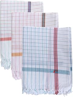 Large Size 68 x 34 inches 320 GSM 100% Pure Cotton Khadi Traditional White Checks Gamcha Bath Highly Absorbing Towel Men Women Kids Kerala Bengal Assam Best All Season (3) quantity