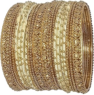 18k Gold Plated Zircon Stones and Beads Studded Fashion Jewellery Metal Bangles Set for Women & Girls