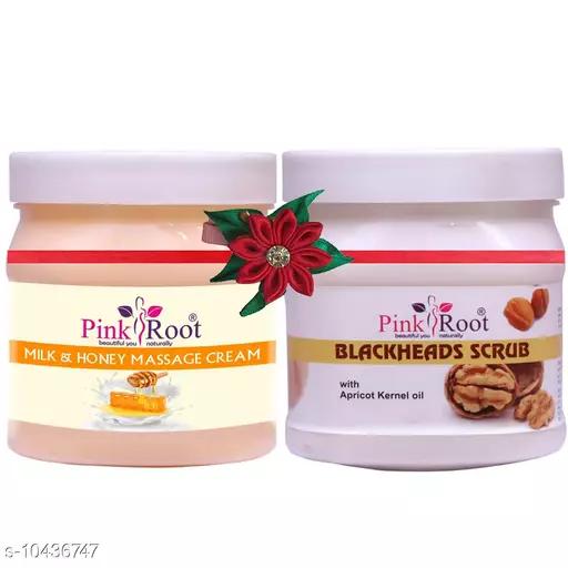 Name:Pink Root Milk Honey Massage Cream 500ml with Blackhead Scrub 500ml Product Name:Pink Root Milk Honey Massage Cream 500ml with Blackhead Scrub 500ml Brand Name:Pink root Type:Face Moisturizers & Day Cream Skin Type:All Skin Types Flavour:Honey Net Quantity (N):2 Add On:Face Scrub Pink Root Honey Almond rich Cream with Blackhead Scrub for Body and Face .