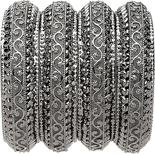 Glass with Zircon Gemstone Studded worked and Flower Pattern Glossy Finished Kada Set For Women and Girls